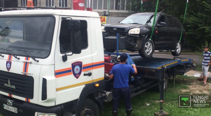 Автомобиль Hyundai Santa Fe двигался по Саина в северном направлении, выехал на развязку, пытаясь поехать на проспект Райымбека. Однако, по неизвестным причинам, снес ограждение и вылетел с развязки. По словам очевидцев, за рулем Hyundai находилась девушка. В настоящий момент автомобиль увезли на эвакуаторе, информации о состоянии водителя нет.
