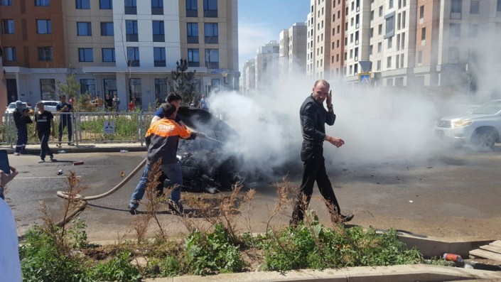 Как сообщают очевидцы, возгорание произошло по улице Кабанбай батыра. По их словам, автомобиль загорелся на ходу.