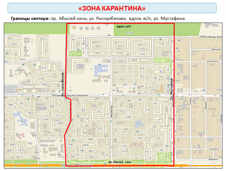 15 апреля в Нур-Султане оцепили жилые дома в районе улиц Рыскулбекова - Мусрепова - Мустафина - проспекта Абылай хана, а также проспекта Кудайбердиулы.