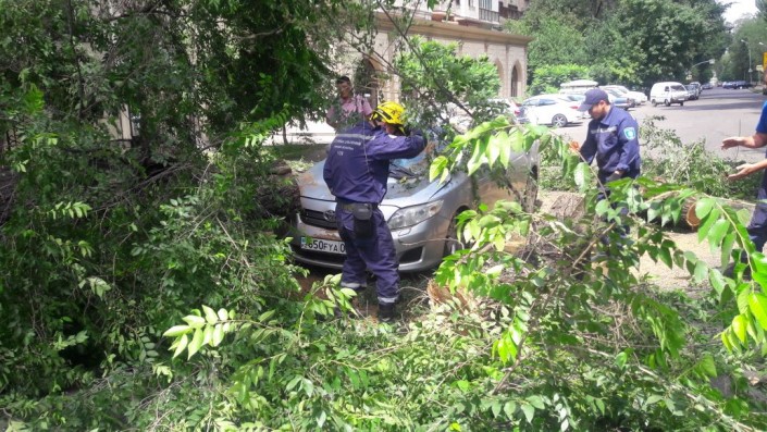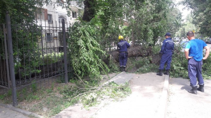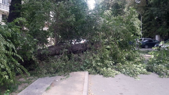 В Алматы большой карагач упал на припаркованный автомобиль Toyota Corolla, сообщает корреспондент программы "Территория происшествий" на канале СТВ.