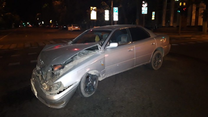 ДТП произошло на пересечении улиц Кабанбай батыра и Кунаева. Со слов водителя автомашины Toyota, он двигался по Кунаева в южном направлении, пересекая перекресток на зеленый сигнал светофора.
