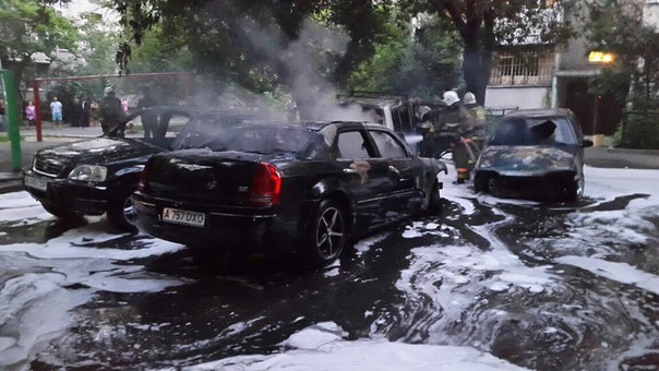 По словам очевидцев, во дворе ругались несколько молодых людей, когда внезапно загорелся автомобиль Chrysler. Затем огонь перекинулся на другие машины.