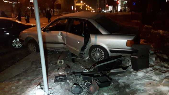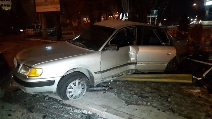 Авария произошла на пересечении улиц Жандосова и Манаса. По словам очевидцев, водитель Volkswagen двигался по Жандосова в восточном направлении на красный сигнал светофора. В этот момент водитель Audi двигался по Манаса на юг. Произошло столкновение. От удара Audi отлетел на обочину и снес светофор.