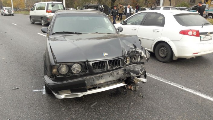 BMW следовала в крайнем правом ряду, выезжая из под моста, RAV-4 ехала в среднем ряду. Со слов водителя BMW, из "кармашка" справа резко начал перестраиваться Daewoo Matiz в ряд, в котором ехала BMW. Водитель BMW начал тормозить и, уходя от столкновения с Matiz, принял немного левее, после чего ударил RAV-4. От удара RAV-4 опрокинулась на бок и зацепила Matiz, который перелетел через бордюр и ударился о столб.