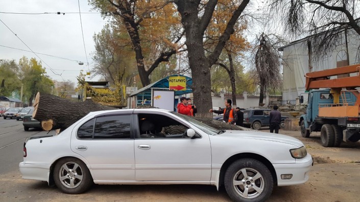 Инцидент произошел по улице Шевченко между улицами Масанчи и Байтурсынова. По информации очевидцев, автомобиль Nissan Cefiro двигался на большой скорости в западном направлении и пытался повернуть во двор. Водитель проигнорировал ограждения рабочих, занимавшихся вырубкой сухих деревьев. В результате, ствол дерева рухнул как раз на автомобиль. Во время инцидента никто не пострадал. Подробности случившегося выясняются.