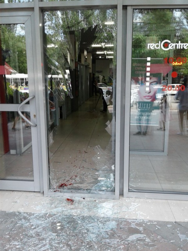 "Она шла к выходу и смотрела в мобильный телефон. Не увидев выход, головой разбила перегородку, присела, вероятно, от боли и порезала ноги и руки об осколки стекла", - рассказали очевидцы.