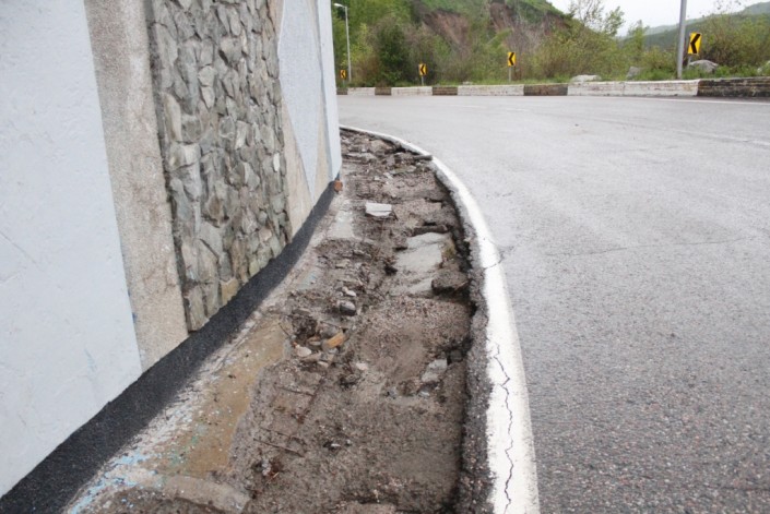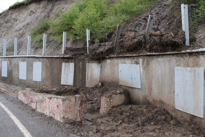 Из-за большого количества осадков на разных участках дороги был сход оползня. В некоторых местах заградительные железные сетки не смогли удержать камнепад и грунт оказался на дороге. Но сейчас дорога уже очищена и движение по ней восстановлено.