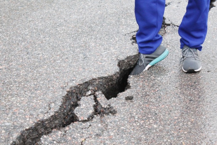 На нескольких участках дороги из-за проседания грунта образовались трещины на асфальтном покрытии.