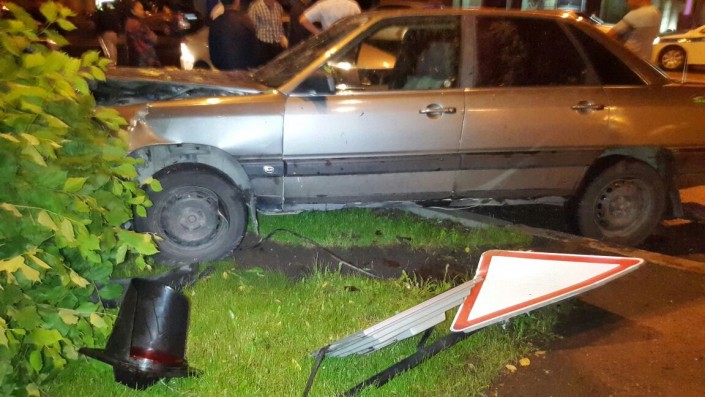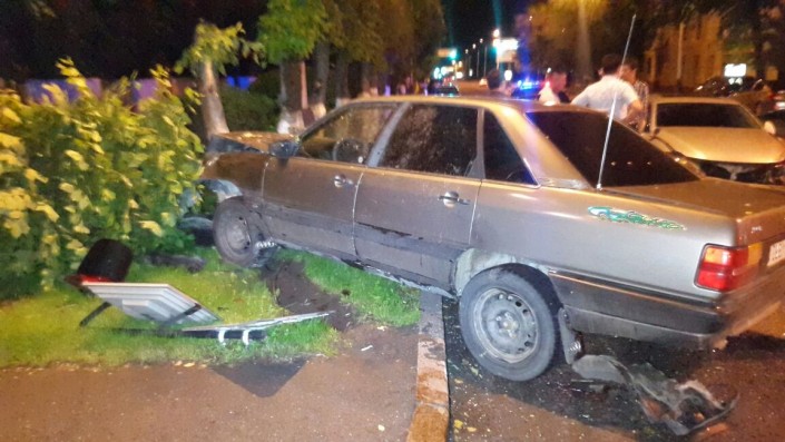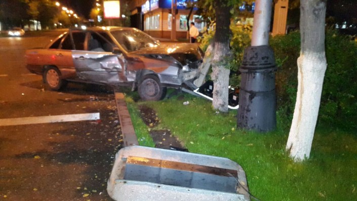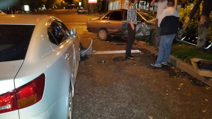 На пересечении улиц Фурманова и Богенбай батыра Lexus столкнулся с Audi, который в этот момент двигался в западном направлении по Богенбай батыра. От удара Audi сбил дерево и светофор. В результате аварии пострадал водитель Audi. Его госпитализировали в больницу.