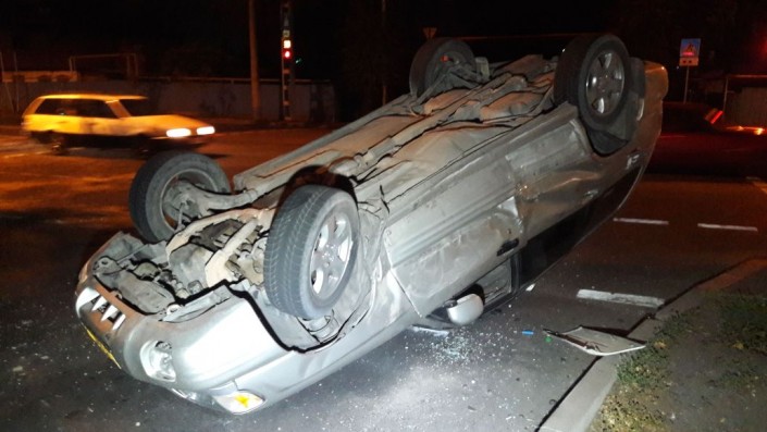 В результате столкновения двух авто Subaru опрокинулась. В ДТП никто не пострадал.