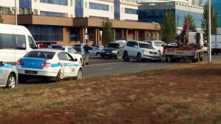 Пользователь Facebook Тимур Асылханов опубликовал на своей странице фото с места столкновения машины дорожного патруля и внедорожника.