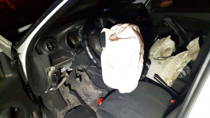 Авария произошла на пересечении улиц Тургут Озала и Есенжанова. По словам очевидцев, Opel двигался по Есенжанова на восток, а Lada Granta - по Тургут Озала в южном направлении. Водитель Opel проигнорировал или не заметил знак "Уступи дорогу", проехал перекресток, Lada ударила автомобиль в бок. От удара Opel отбросило к воротам автомойки.