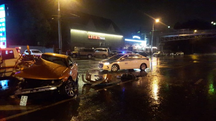 Авария произошла между улицами Утеген Батыра и Емцова, напротив заправки Royal Petrol.