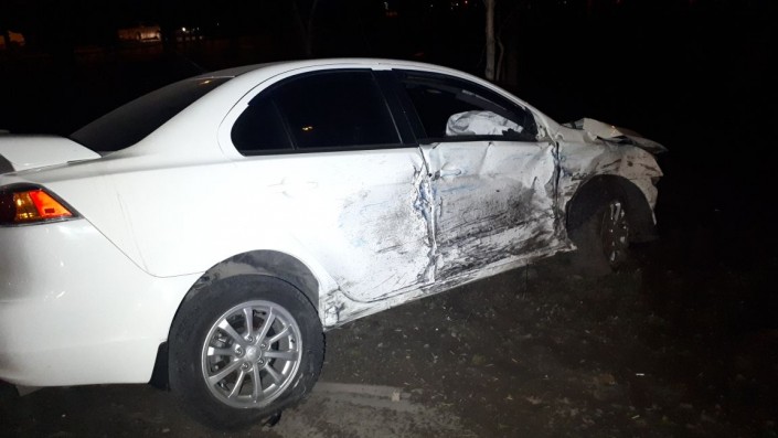 Со слов очевидцев, Mitsubishi Lancer "байговал" с неустановленным джипом, они следовали по Гагарина в северном направлении. Lancer проехал Карасай батыра на запрещающий сигнал светофора, в этот момент эвакуатор ехал по Карасай батыра на запад. Водитель эвакуатора ударил Lancer. От удара легковое авто отлетело на аллею, а эвакуатор заехал в арык.