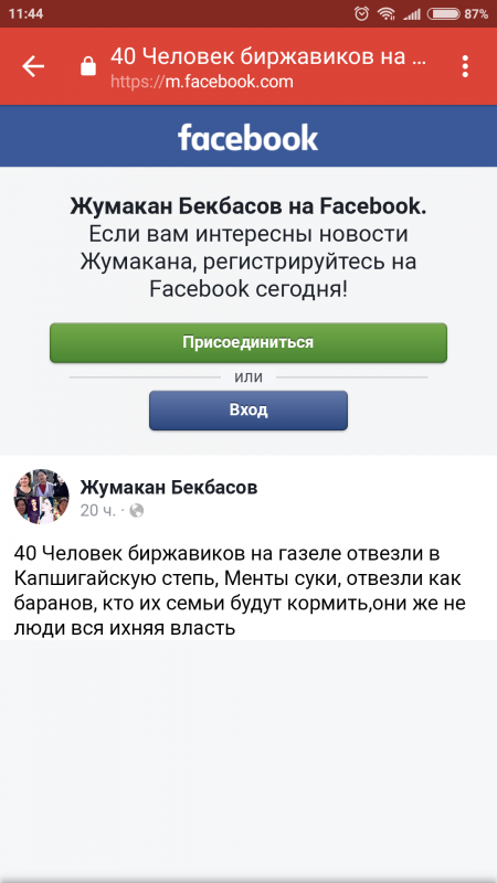Сообщается, что в ходе мониторинга социальных сетей в Facebook выявлен пост пользователя Жумакана Бекбасова о том, что якобы 40 человек из числа лиц, стоящих в поисках работы по проспекту Сейфуллина, полицейские погрузили в автобус и вывезли за пределы города.