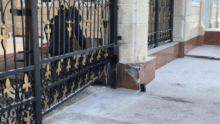 Фотографии врезавшегося в ворота Акорды автомобиля Porsche Cayenne рассылают казахстанцы в мессенджерах, передает Tengrinews.kz.