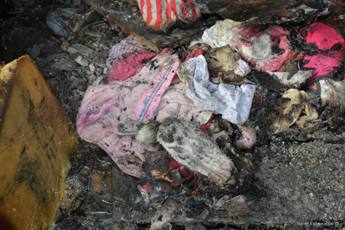 Спасатели прибыли через семь минут после поступления вызова, но дом сгорел полностью - деревянные балки, обшивка, вся мебель и техника. На месте трагедии разбросаны вещи, мягкие игрушки, стоит обугленная детская кровать.