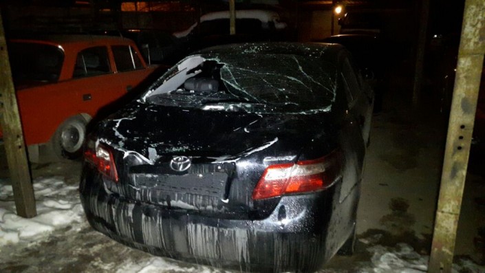 ЧП произошло 2 декабря. С крыши дома № 8 по улице Саина на припаркованные во дворе машины обрушились пласты снега и глыбы льда. Как рассказала владелица Toyota Camry, около 16.00 она приехала домой и припарковала во дворе машину. "С крыши упали сосульки и разбили ее. Я позвонила в КСК, чтобы они разобрались в ситуации, но меня отправили в МЧС", - сказала женщина.