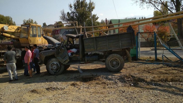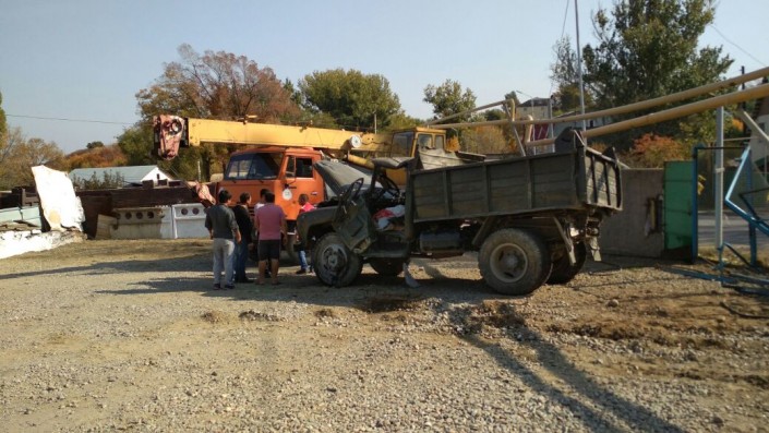 Грузовик врезался в газовые трубы и перевернулся в Алматы Фото "Территория происшествий".