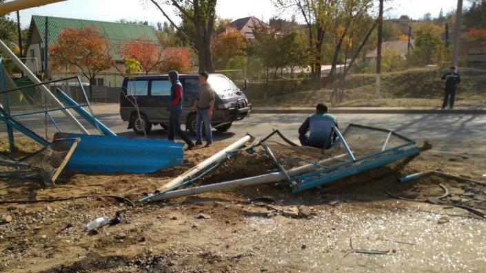 ДТП произошло по верхней трассе, по улице Жандосова. Грузовик ГАЗ следовал на восток. Водитель не справился с управлением, сбил несколько секций металлического забора и перевернулся. При этом он зацепил несколько газовых опор и газовых труб.