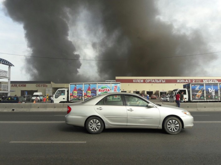 Ранее сообщалось, что, по предварительным данным, возгорание началось на рынке "Олжа".
