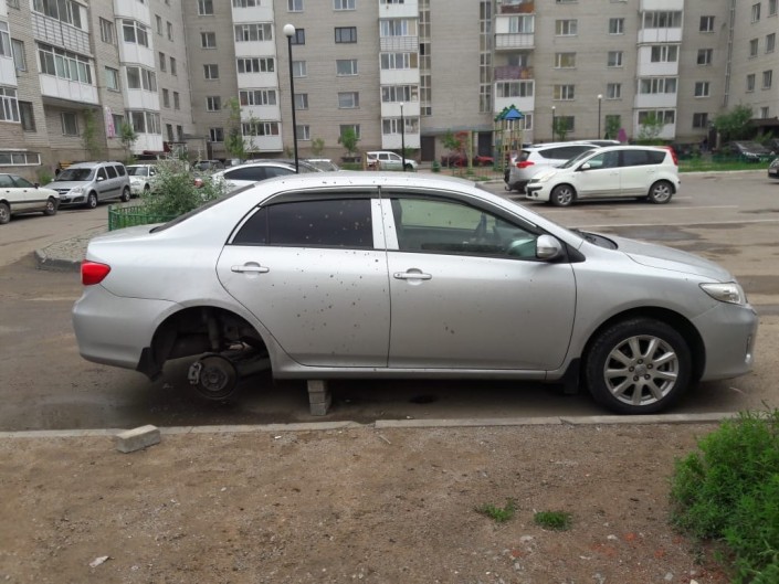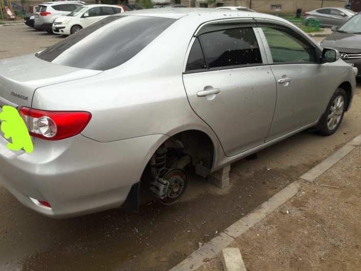 Жертвой автоворов стала и жительница Астаны Карлыга Жанузакова. Ночью с ее автомобиля сняли колеса. Это произошло по адресу: улица Кенена Азербаева, 2.
