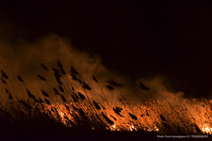 Камыш горит на площади 10 гектаров на окраине села Оразак в Целиноградском районе Акмолинской области, передает Tengrinews.kz со ссылкой на пресс-службу ДЧС региона.
