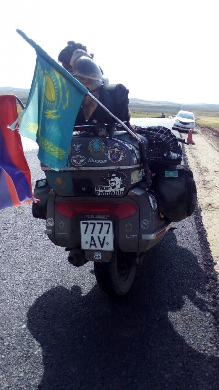 С 2004 по 2014 год по собственной инициативе проехал на мотоцикле по всем континентам мира, провез по 150 странам государственный флаг Казахстана, преодолев путь длиной в 250 000 километров - беспрецедентный случай в истории, и это первая "Мотокругосветка в одиночку" - в течение десяти лет. Были поданы документы на внесение в Книгу рекордов Гиннесса.