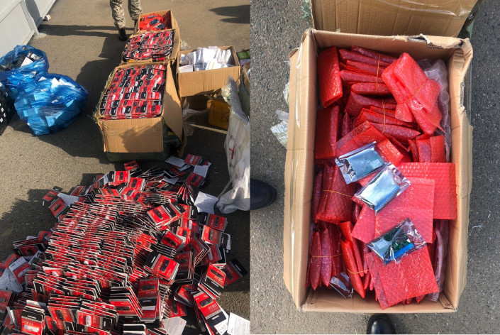 Так, таможенники задержали 745 блоков сигарет. Общий их вес составил более 100 килограммов. Также ими были изъяты 148 б/у сотовых телефонов разных моделей и марок.