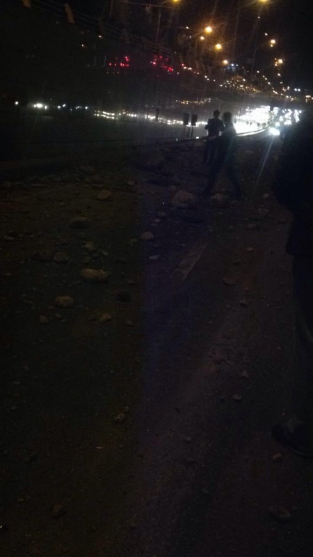 Груженый камнями большегрузный автомобиль опрокинулся на бок, задев легковые автомобили. В районе ДТП перекрыто движение. Образовалась огромная пробка. Жертв нет, легкие травмы получил водитель грузовика.