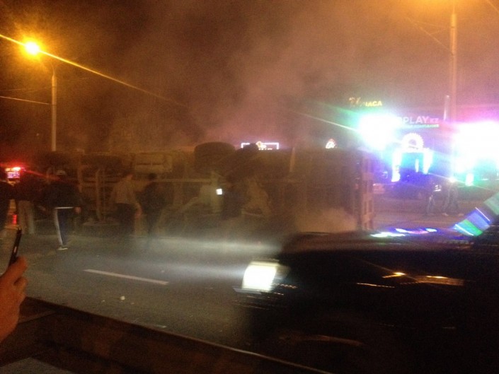 Очевидец происшествия рассказала Tengrinews.kz, что в момент аварии находилась в доме, который расположен неподалеку. "Я укладывала спать малыша, услышала сильные удары, потом сильный скрежет по асфальту. Позвала мужа, мы подошли к окну и увидели дым. Потом спустились вниз, увидели там перевернутый грузовик. Дальше были две перевернутые легковые машины. Это было в 22.07", - сообщила она.