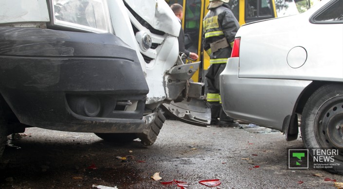 Авария произошла на пересечении улиц Байтурсынова и Карасай батыра. Обстоятельства ДТП еще неизвестны, на месте - несколько перевернутых легковых машин, некоторые из них полностью смяты. Помимо этого, участником аварии стал трамвай, который двигался вниз по Байтурсынова. Дорога полностью заблокирована. Прохожие и другие автомобилисты пытаются разобрать завалы.