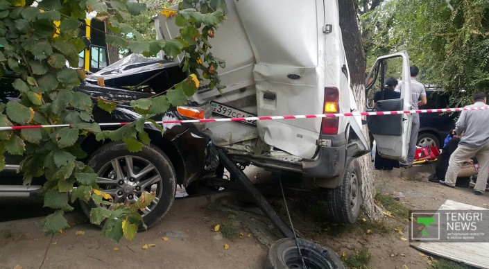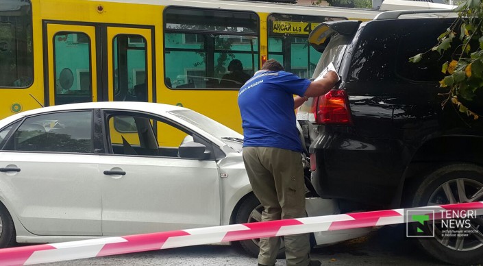 Корреспонденту Tengrinews.kz очевидцы рассказали, что тормоза у трамвая отказали еще на улице Шевченко. Стоит добавить, что на кабине трамвая есть знак "За рулем стажер".