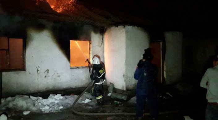Сообщение о горении частного дома в микрорайоне Байбесик поступило на пульт "101" в 23.36. Первые пожарные расчеты прибыли к месту вызова в 23.46.