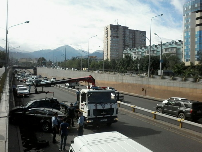 В массовом ДТП в Алматы пострадал один человек, сообщает корреспондент программы "Территория происшествий" на телеканале СТВ.
