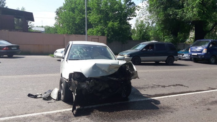 Женщина пострадала в результате лобового столкновения двух авто в Алматы, передает корреспондент программы "Территория происшествий" на канале СТВ.