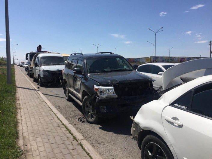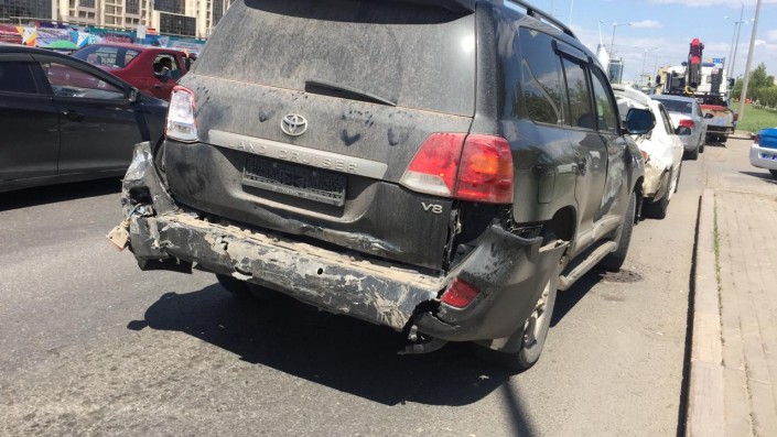 "В последний момент никакой реакции у него не появилось, тормозной путь у него пять метров, не больше. Возможно, отвлекся, возможно, стало плохо. В итоге он "собрал" шесть автомашин, которые стояли впереди: пять легковых и одна "Газель". Столкновение началось с грузовой "Газели". Она дальше по инерции ударила следующее авто. Водитель грузовика находится в непонятном состоянии, он неконтактный, без сознания, но телесных повреждений у него нет. Кабина целая, он внутри не бился", - пояснил Елжан Чупеков.