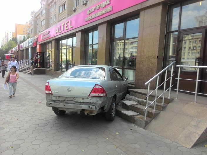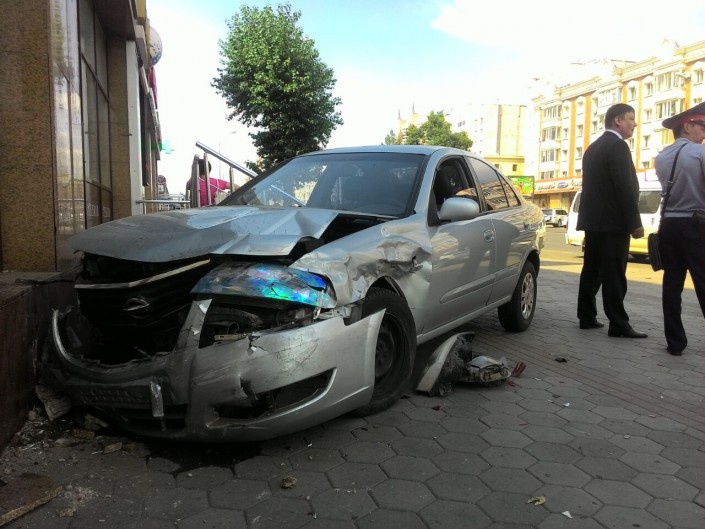 От удара один из автомобилей вылетел на тротуар и врезался в Центр продаж и обслуживания Altel.