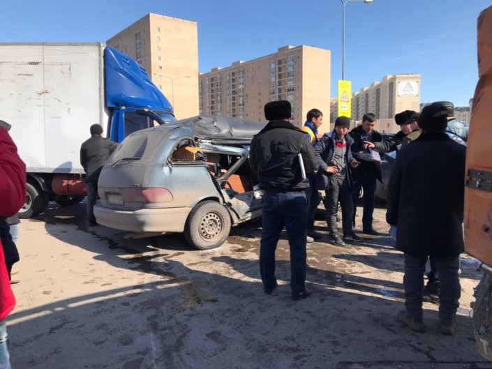 КамАЗ, "Газель" и три авто столкнулись в Астане, передает корреспондент Tengrinews.kz.