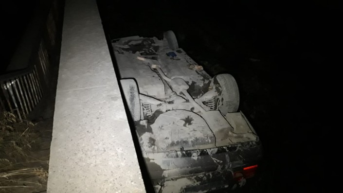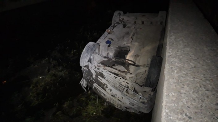 Со слов очевидцев, водитель автомашины Mercedes на затяжном повороте не справился с рулевым управлением. Машина залетела на бордюр, снесла забор, улетела в БАК и там перевернулась.