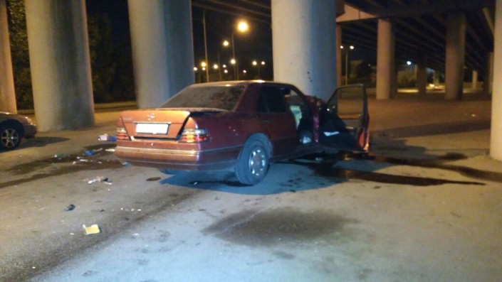 Авария произошла в ночь с 21 на 22 сентября на проспекте Рыскулова. По словам очевидцев, водитель Mercedes двигался в восточном направлении и намеревался повернуть налево - либо развернуться, либо повернуть в сторону Северного кольца. Однако по непонятным причинам мужчина въехал в опору моста между двумя поворотами.