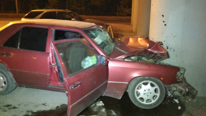 В Алматы водитель Mercedes не вписался в поворот и на высокой скорости въехал в опору моста, сообщает корреспондент программы "Территория происшествий" на канале СТВ.
