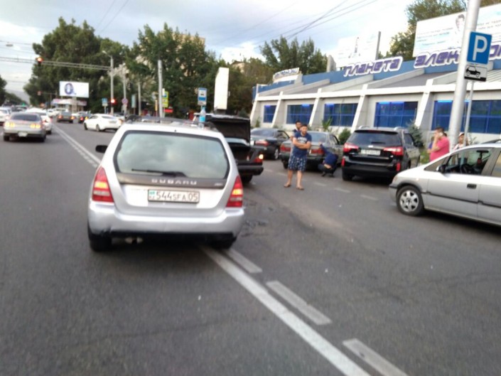 Авария произошла вечером 19 июля на улице Толе би около 20.00. По словам очевидцев, автомобиль Subaru следовал по Толе би в западном направлении. После пересечения улицы Ауэзова водитель легковушки решил совершить разворот. Свой маневр он почти завершил, однако в это время в восточном направлении по спецполосе двигался Mercedes. Водитель немецкого авто совершил столкновение с Subaru. По предварительным данным, жертв и пострадавших в результате ДТП нет.