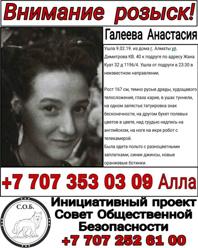 В Алматы две недели ведутся поиски 22-летней Анастасии Галеевой, сообщает Tengrinews.kz.