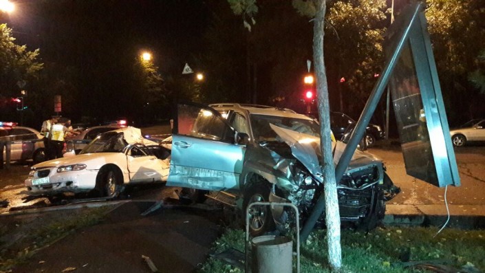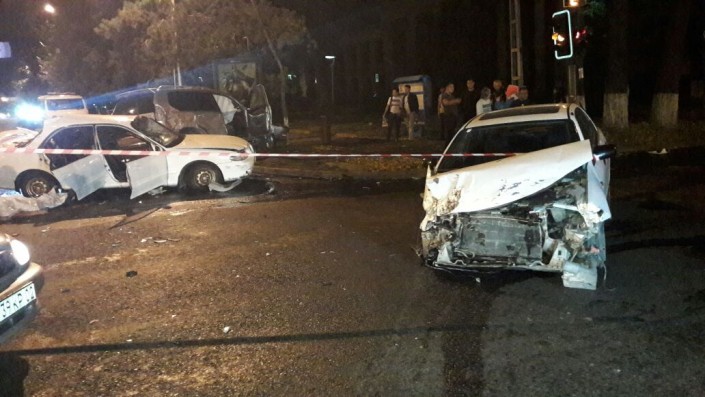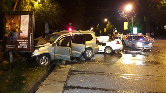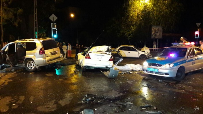 Инцидент произошел в ночь с 21 на 22 августа около 3.00 на пересечении улиц Толе би и Калдаякова. Автомашина Lexus 470 ехала со стороны ВОАД по Толеби в западном направлении. В это время по Калдаякова в северном направлении двигалась Mazda 323, а в южном направлении - Hyundai Sonata и Toyota Land Cruiser Prado.