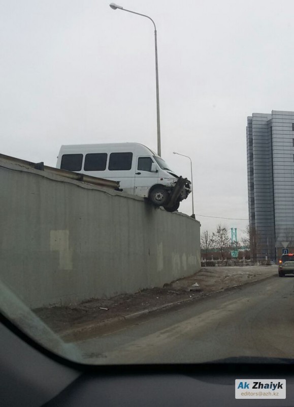 Днем в субботу, 24 декабря, в Атырау в результате ДТП микроавтобус едва не вылетел с моста Авангард-Жилгородок, сообщает портал "Ак Жайык".