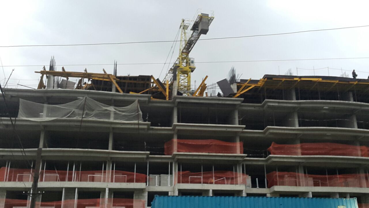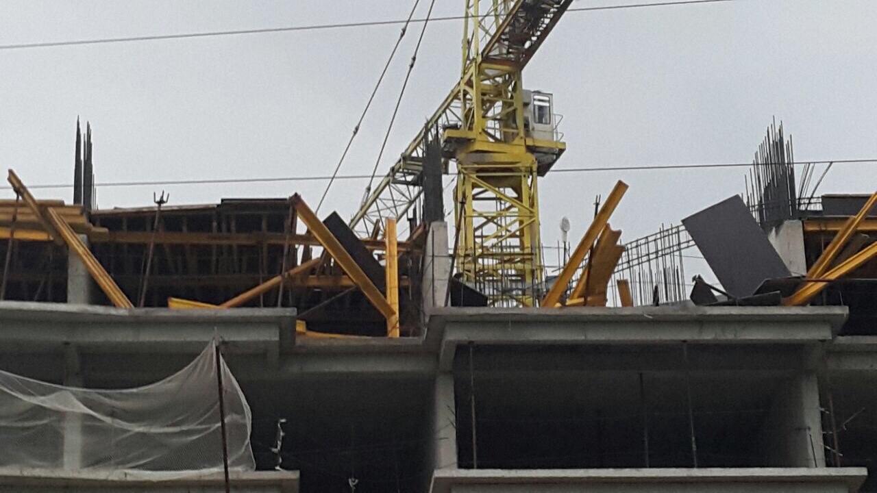 Последствия урагана на территории строящегося жилого комплекса, расположенного на улицах Навои и Торайгырова (бывшая Фрунзе).