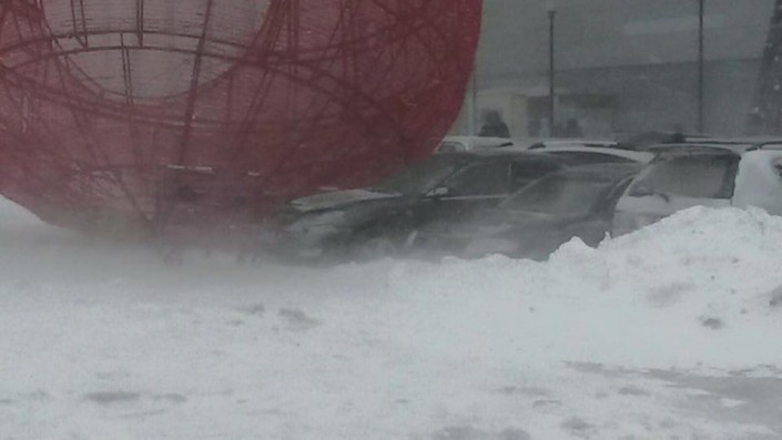 В социальных сетях распространяют фото, на котором заметно, что новогодний шар из-за сильного ветра придавил один из автомобилей. В ДЧС подтвердили, что на 112 поступал звонок об этом инциденте. Однако деталей не сообщили.