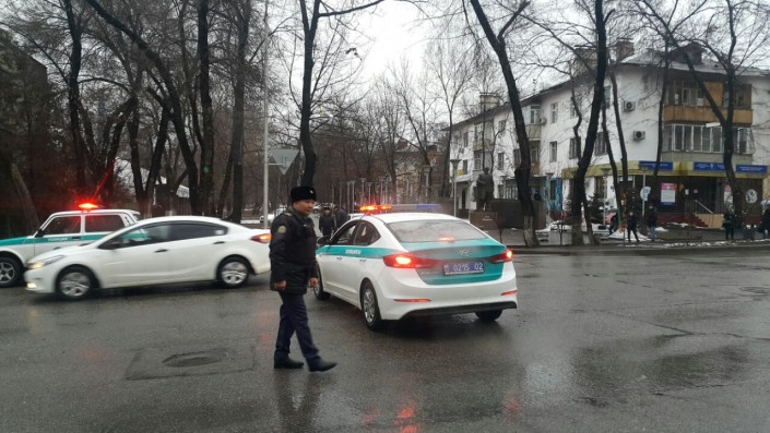 "Оцепление по Ади Шарипова, между Толе би и Богенбай батыра. Людей не пускают. Машины разворачивают", - сообщил корреспондент программы "Территория происшествий" на телеканале СТВ.