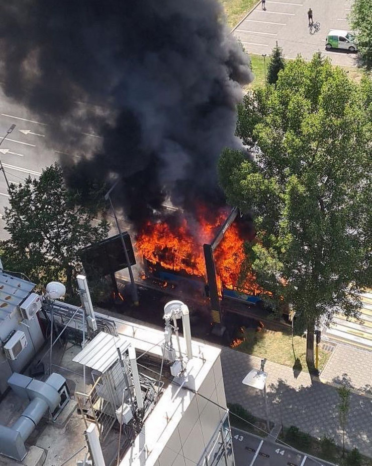 "Проспект Назарбаева ниже проспекта Аль-Фараби. Предварительно, горит маршрутный автобус", - сообщили в ведомстве.